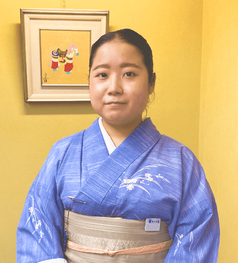 地元の京都で働きたいと考えて就職活動をしていた際に、求人を見かけ、着物を着て働けることも魅力に感じ入社しました。